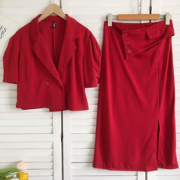 Solid Front Buttoned Puffy Sleeve Top With Skirt